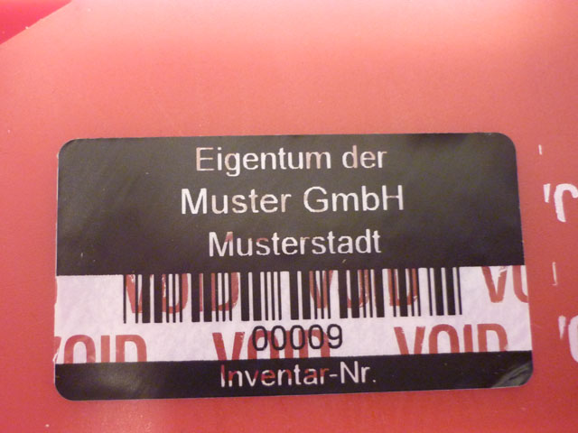 Ces étiquettes d’inventaire autocollantes sont constituées d’un plastique de grande qualité et sont extrêmement résistantes à l’eau ainsi qu’aux produits d’entretien courants. La partie à coller est dotée d’un revêtement spécial. Si l’étiquette est enlevée, puis de nouveau collée, ce revêtement laisse un marquage très distinct aussi bien sur le support que sur l’étiquette même.